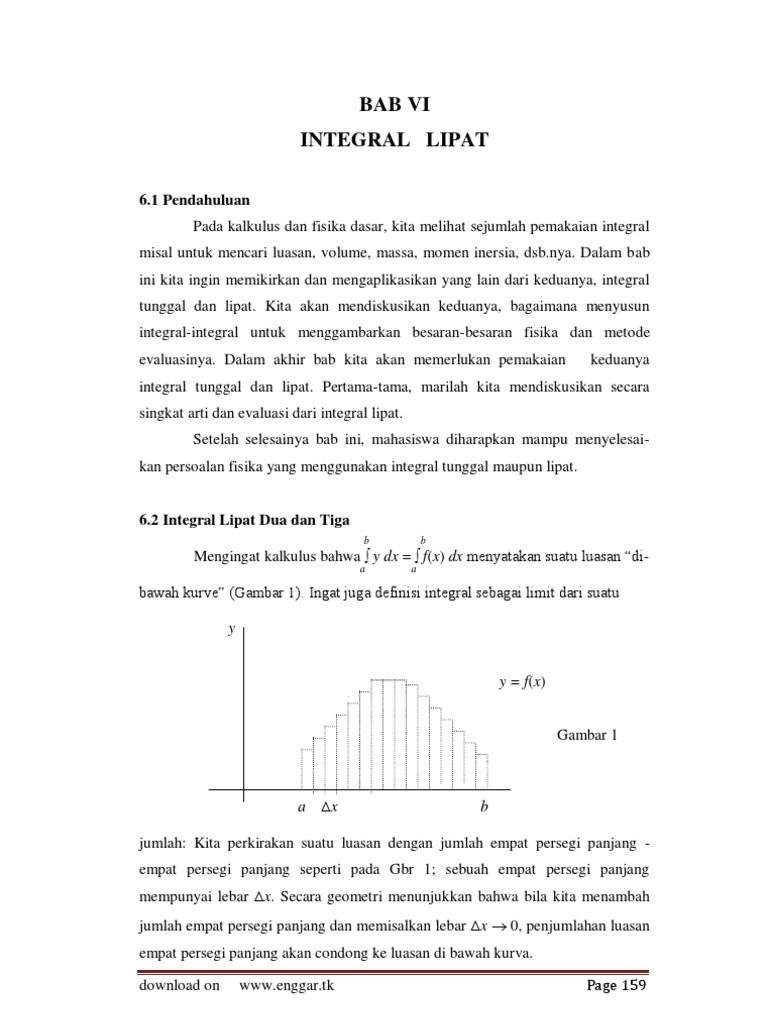 Contoh Soal Integral Lipat 2. Contoh soal integral level kognitif aplikasi biasanya diberikan dalam bentuk mencari luas yang daerah dibatasi kurva. Untuk mengerjakan soal ini, kita dapat mencontoh cara pada soal sebelumnya yaitu melakukan integral fungsi terlebih dahulu kemudian mencari nilai p Berikut ini telah kami rangkum beberapa contoh soal integral parsial beserta jawaban dan pembahasannya.